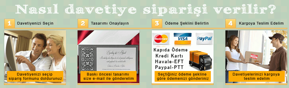 * Eko Trend Davetiye Ödemesi yapılan davetiye siparişleriniz, onay alındıktan sonra baskıya alınır. Ödemesi ve onayı alınan siparişler değiştirilemez, iptal edilemez.